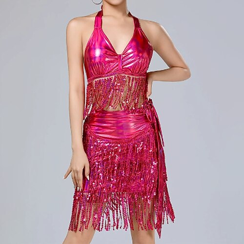 Exotische Tanzkleidung Röcke Quaste Damen Leistung Alltagskleidung Ärmellos Tiefer Bund Paillettenbesetzt