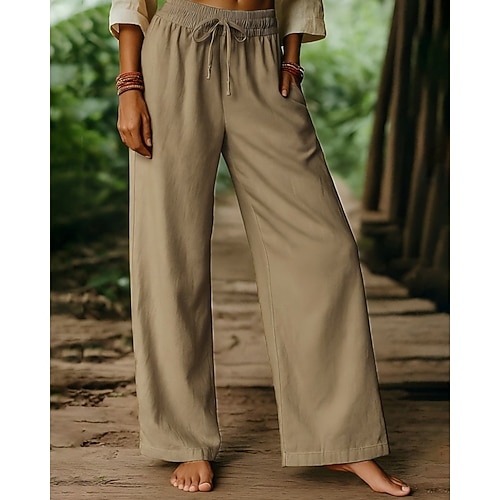Damen Stoffhosen Abgeschnittene Hose Streetwear Lässig Knöchellang Hohe Taille Einfach Kordelzug Bequem Straße Ferien Alltagskleidung Schwarz Weiß Knackmandel Khaki Herbst Normale Passform
