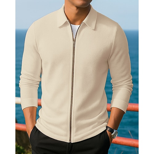 Herren Einfarbig Freizeitmäntel Lounge-Jacke Jacke mit durchgehendem Reißverschluss Herbst Winter Waffel Langarm Athleisure Outdoor Reise Sport Blau Schwarz Weiß Sportbekleidung Sportkleidung