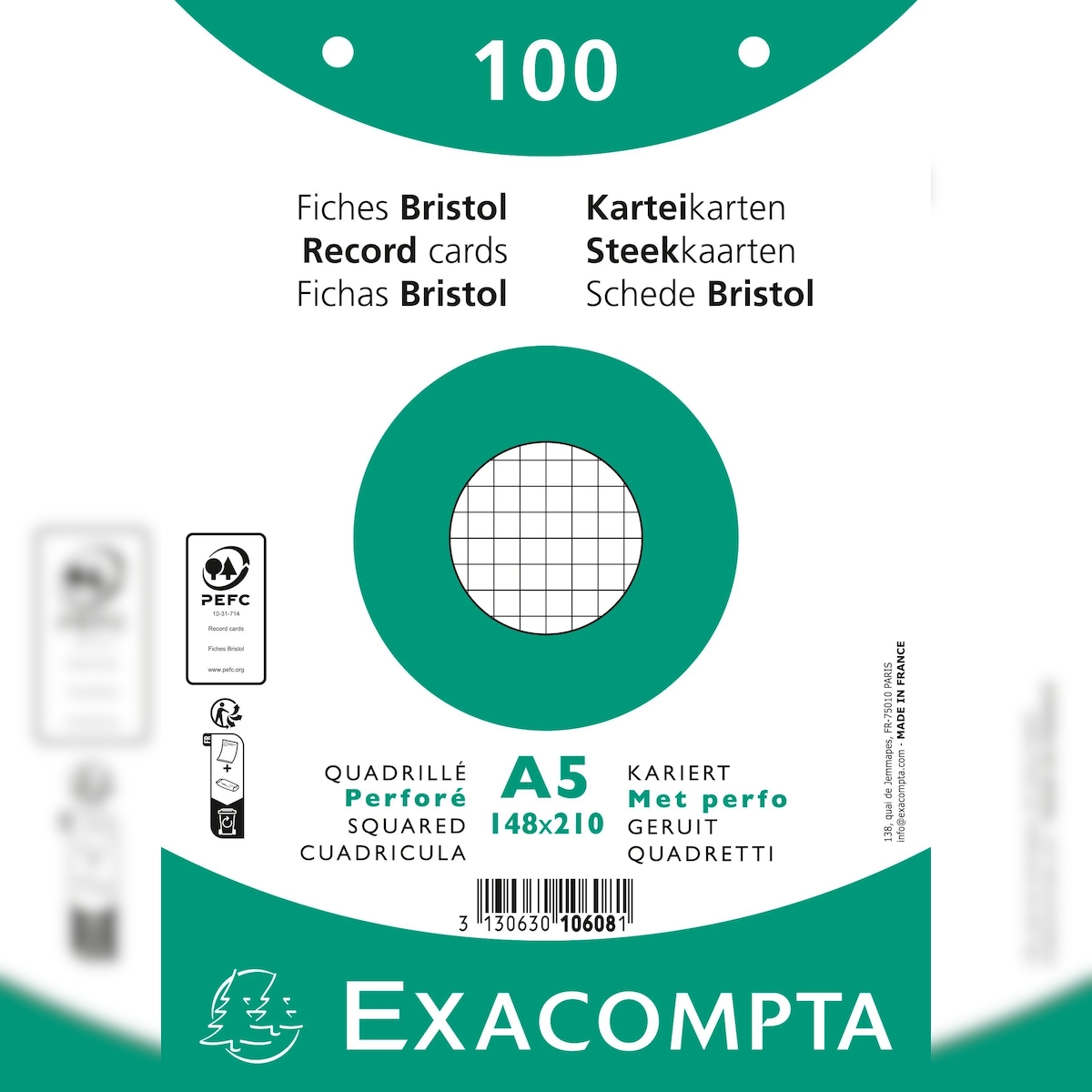 Exacompta 10608E 10x Karteikarten 148x210 kar perf ws 100St - Weiß
