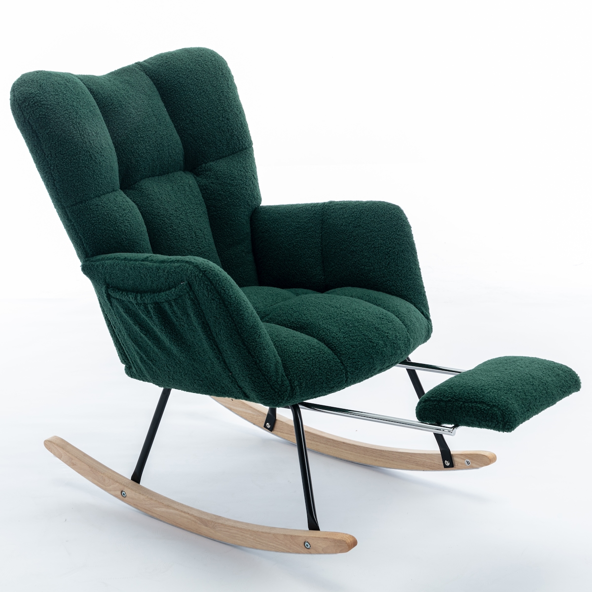 OKWISH Relaxsessel Schaukelstuhl 80x98x98 Teddy Stoff gepolstert mit Fußstütze Ergonomisch Wohnzimmer Schlafzimmer Komfort Grün