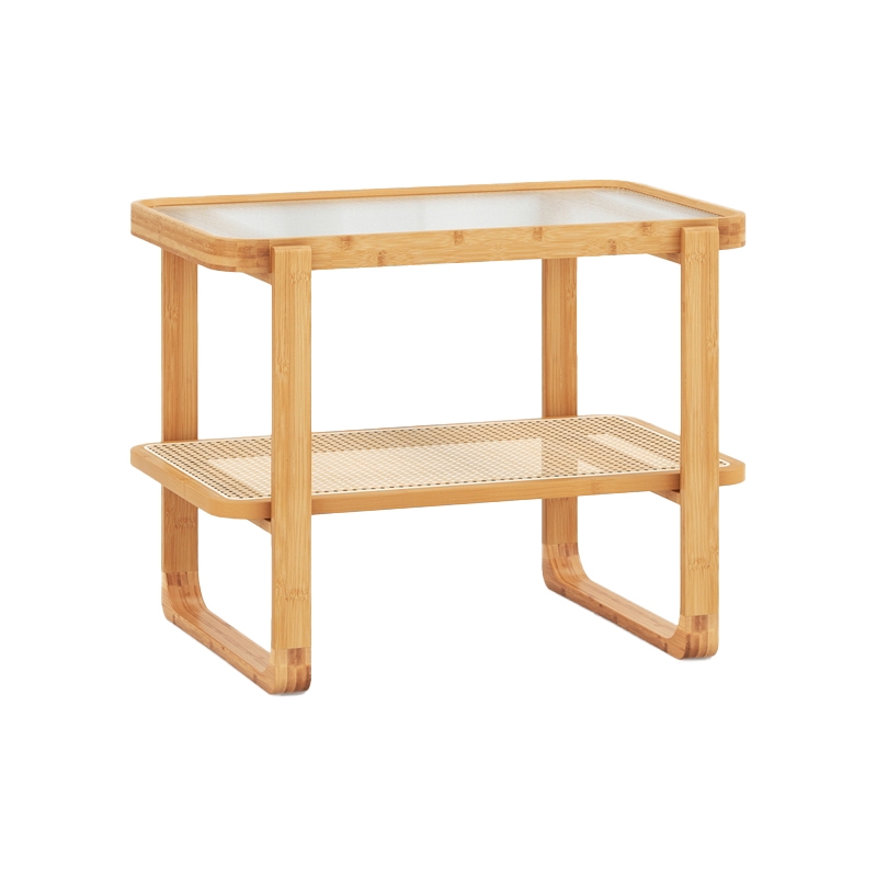 COSTWAY Beistelltisch, Couchtisch mit abnehmbarer Glasplatte und Rattanablage, 70,5 x 44,5 x 54,5 cm