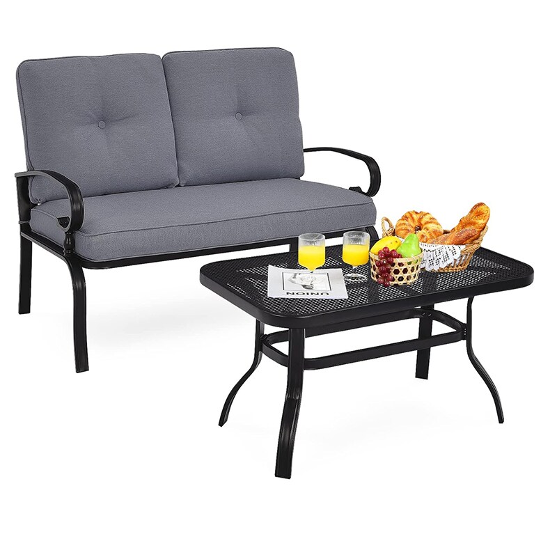 COSTWAY 2-Sitzer-Gartenbank mit Couchtisch, Bank mit Kissen, 120 x 73 x 94 cm, grau + schwarz