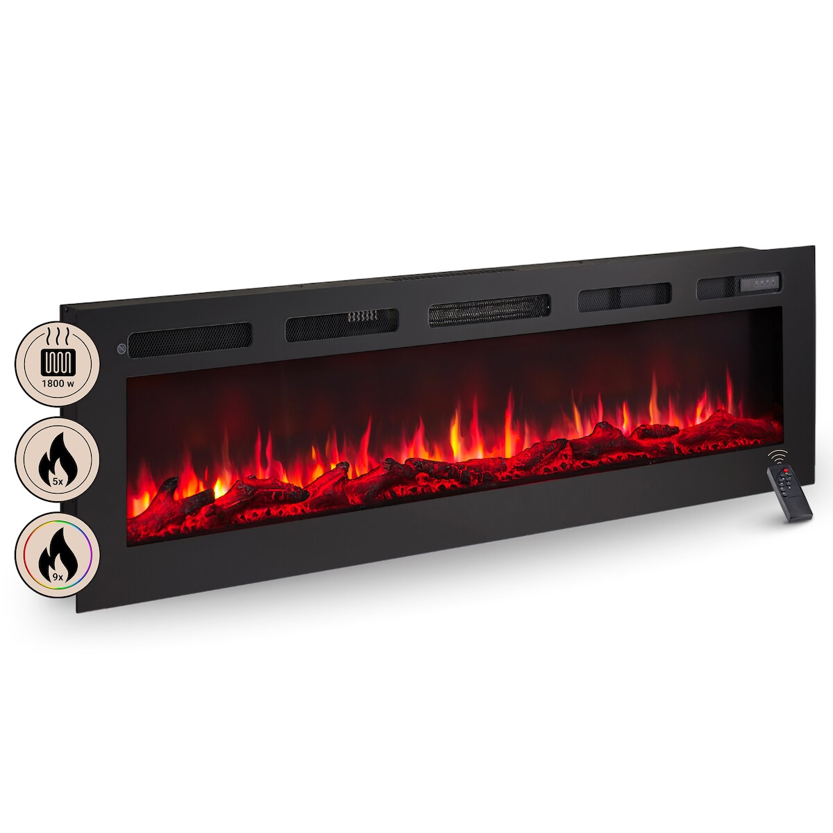 BALDERIA Elektrokamin Leif 60, 2in1 Elektrischer Wand- oder Einbaukamin mit LED-Flamme und Heizfunktion, Schwarz