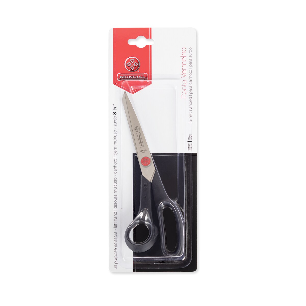 MUNDIAL, Mehrzweckschere für Linkshänder, (661N-8.1/2), 21.6CM, Rote Spitze, Glatte Schneide, Schwarz, Edelstahl.