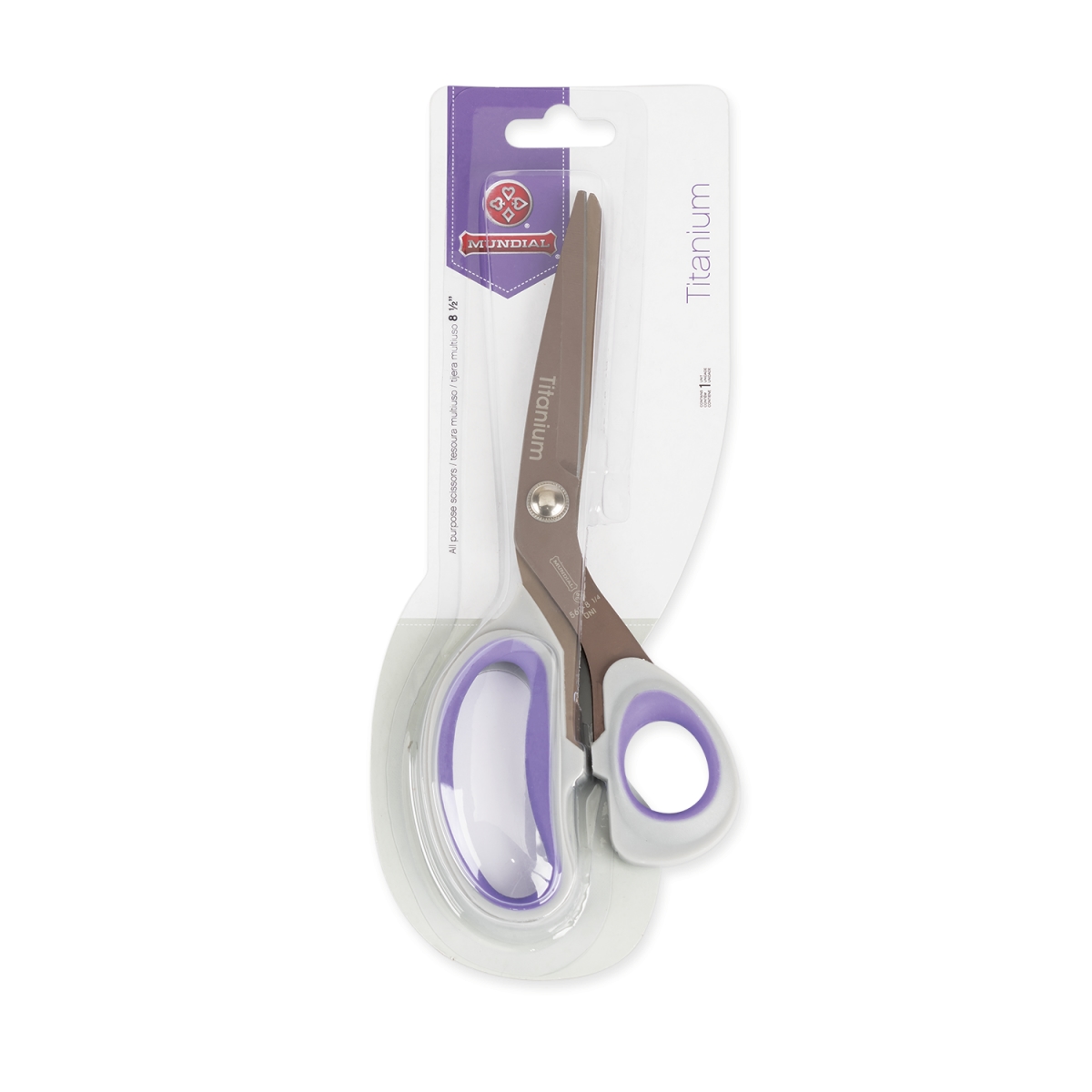 MUNDIAL, Mehrzweckschere, (560-8.1/2), 21.6CM, Titanbeschichtete Klinge, Glatte Schneide, Grau und Lila, Thermoplastisches Harz und rostfreier Stahl.