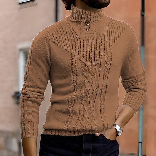 Herren Pullover Strickpullover Gerippt Stricken Normale Oberteile Gestrickt Einfach Rollkragen Mode Basic Urlaub Alltagskleidung Bekleidung Herbst Winter Wein Schwarz S M L