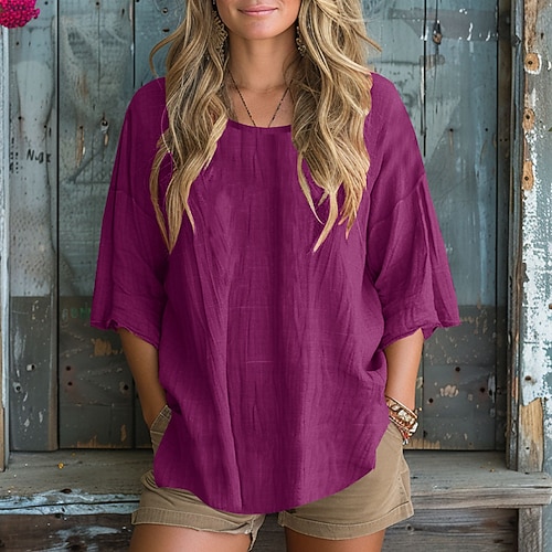 Damen Textur Bluse Bluse Einfach Modern Lässig Dreiviertelarm Rundhalsausschnitt Normale Oberteile Täglich Ausgehen Blau Gelb Rosa Fuchsie Grau Herbst