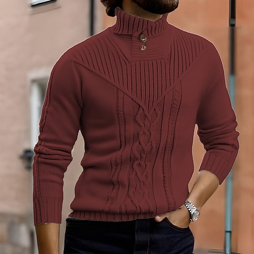 Herren Pullover Strickpullover Gerippt Stricken Normale Oberteile Gestrickt Einfach Rollkragen Mode Basic Urlaub Alltagskleidung Bekleidung Herbst Winter Wein Schwarz S M L