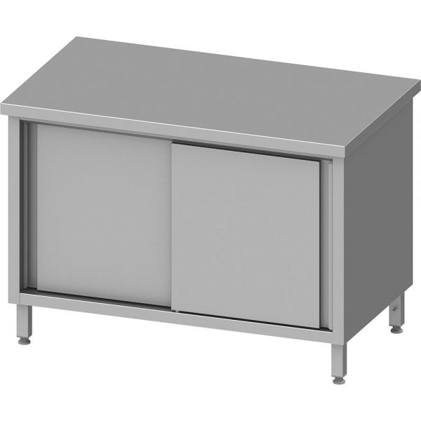 Stalgast Arbeitsschrank mit Schiebetüren, 1500x600x850 mm, ohne Aufkantung, verschweißt