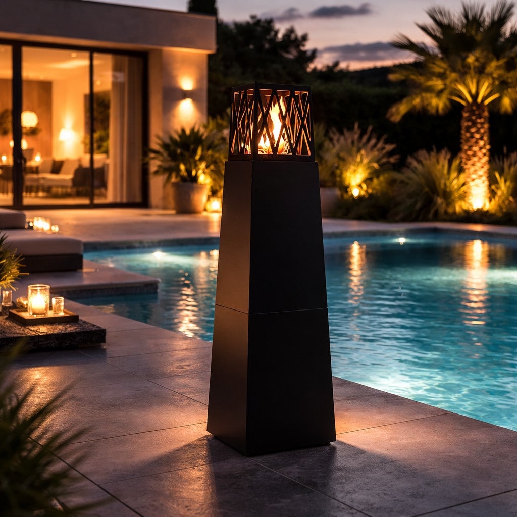 Divina Fire Vulcano Nero 40x40x145mm Bioethanol-Gartenkamin für den Außenbereich