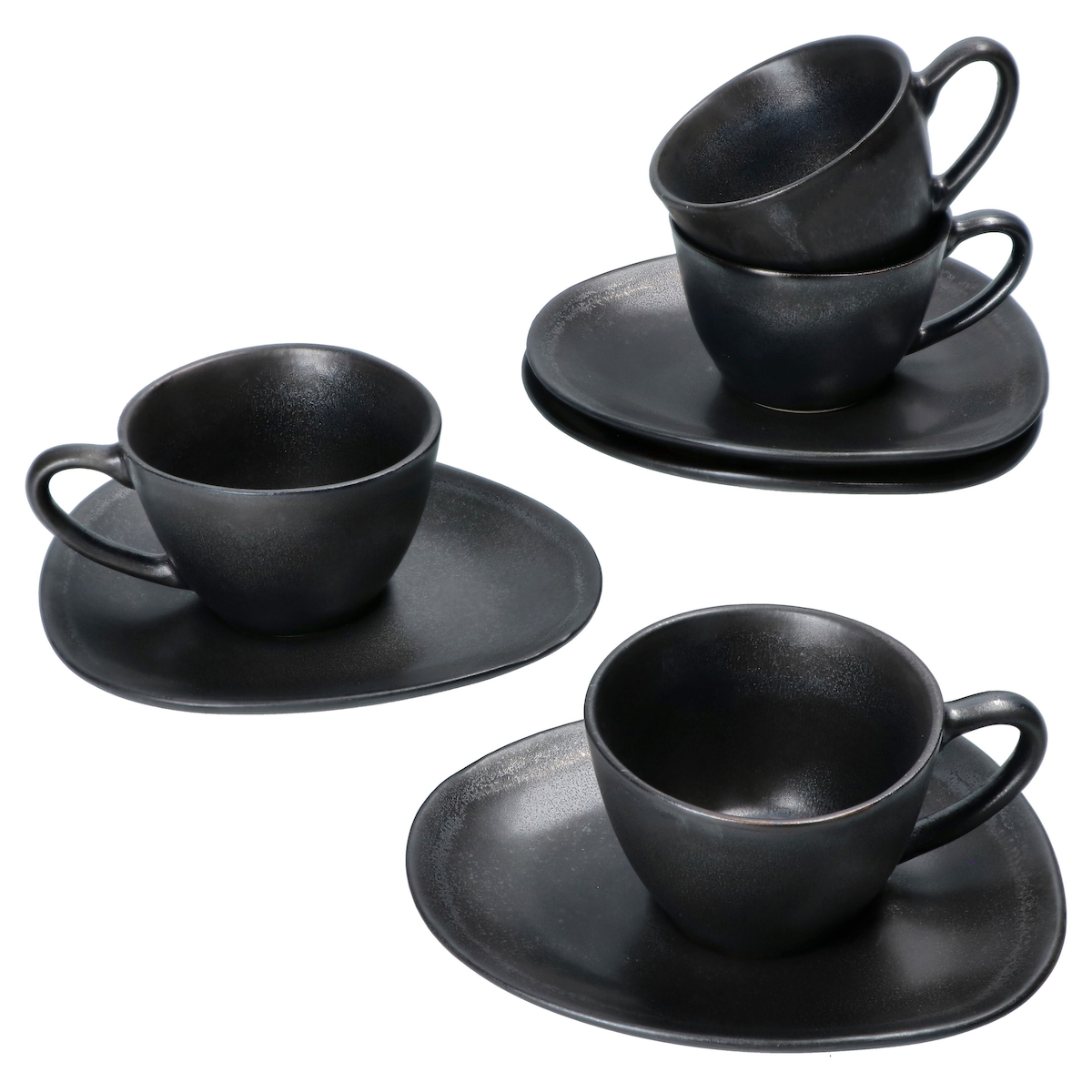 Manhattan Nero Espressotasse + Untertasse für 4 Personen 90ml Steingut Schwarz
