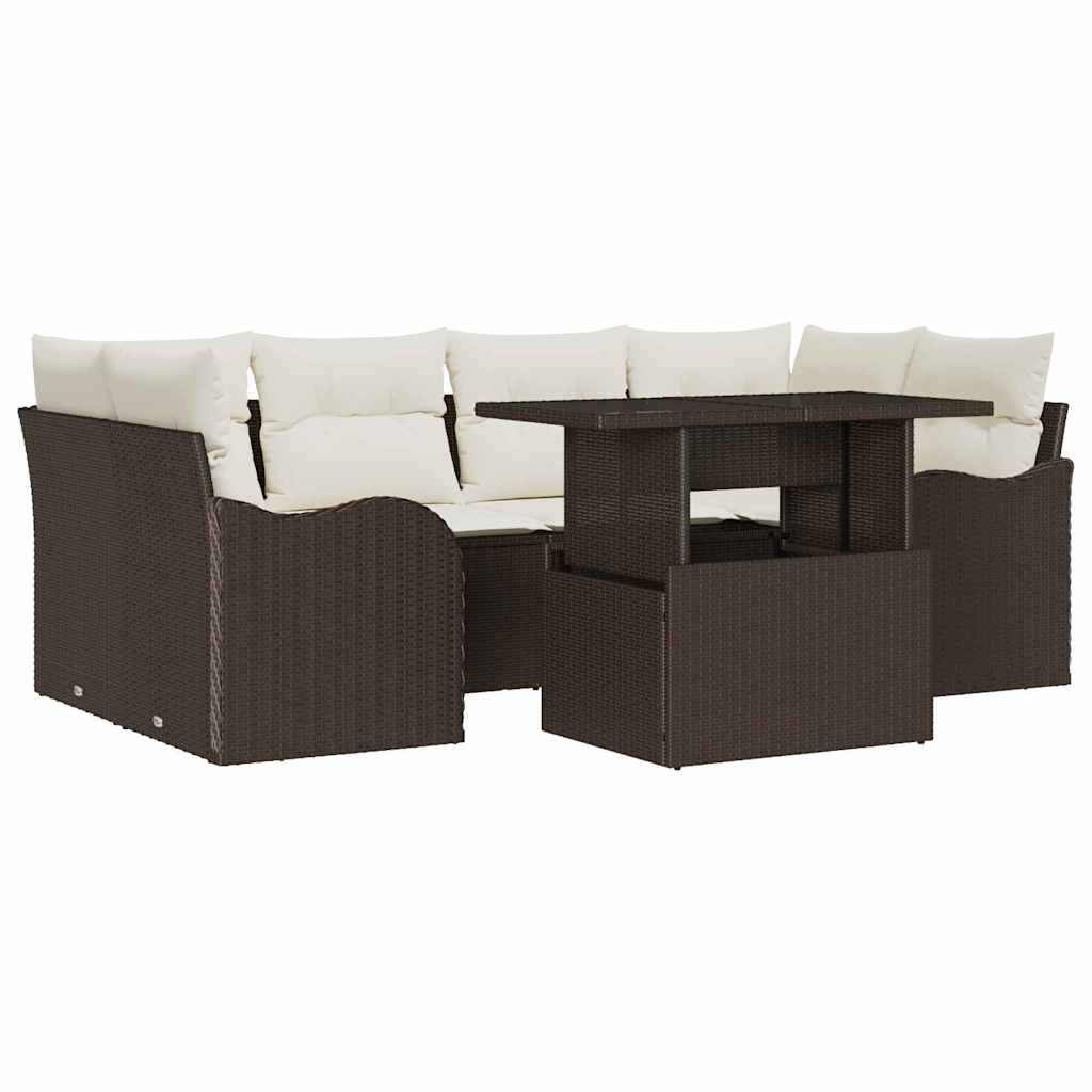 vidaXL Garten-Sofa-Set mit Kissen mit Speicher 7 pcs Braun Poly Rattan