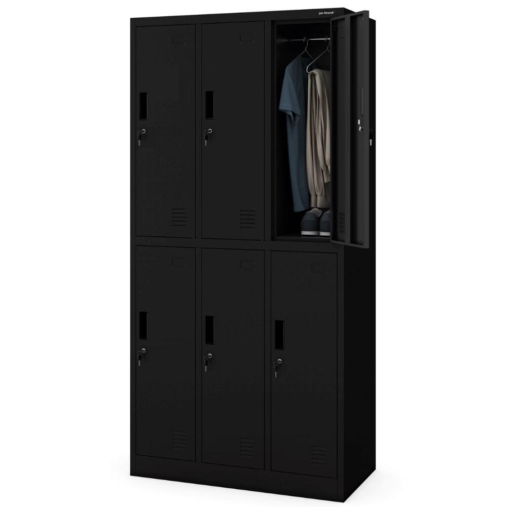 DELUKE Umkleideschrank Spind TOKIO - 6 Abteile, Etikettenhalter Lüftungsschlitze | Umkleidespind Schließfachschrank Garderobenspind, 185x90x45cm Schwarz