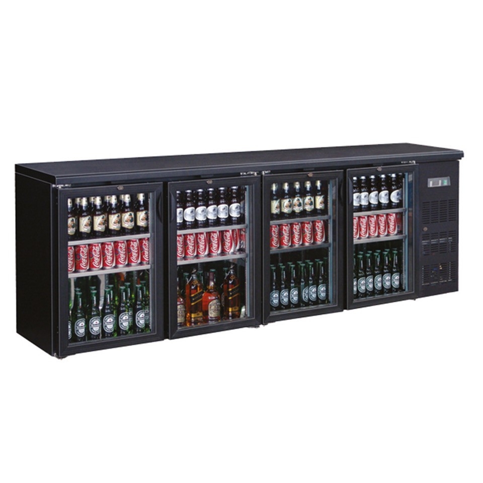 A&S polarny Gastro Flaschenkühltisch Kühltisch Barkühler 4 Glastüren, schwarz, 484 L 0/+10°C