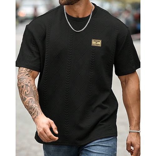Herren T Shirt T-Shirt Kurzarmshirt Kurzarm Rundhalsausschnitt Sommer Frühling Einfach Mode Designer Basic Jacquard Urlaub Straße Ausgehen Schwarz Weiß Rosa Top T-Shirt für Herren