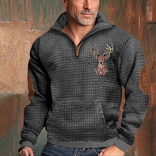 Herren Vollreißverschluss-Kapuzensweatshirt Reißverschluss Kapuzensweatshirt Fleecejacke Fleece Kapuzensweatshirt Schwarz Wein Blau Braun Grün Mit Kapuze Rentier Einfach Grafikdrucke Reißverschluss