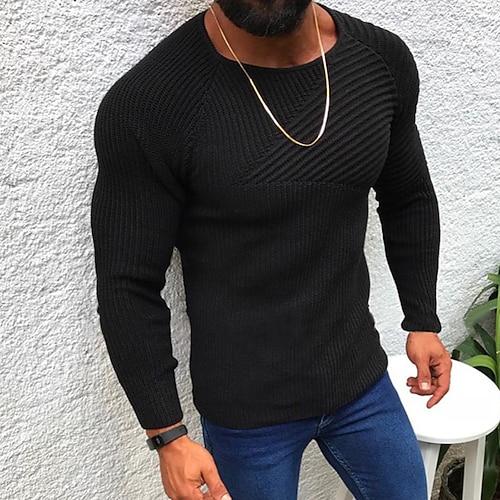 Herren Pullover Strickpullover Gerippt Stricken Normale Oberteile Gestrickt Einfach Rundhalsausschnitt Mode Basic Urlaub Alltagskleidung Bekleidung Herbst Winter Schwarz Weiß M L XL