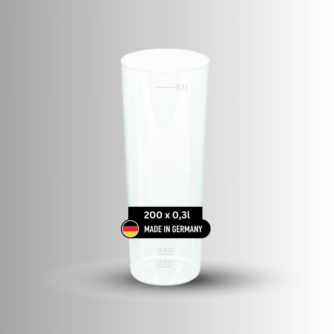 200 Longdrikbecher Mehrwegbecher 300ml Made in Germany Getränkebecher mit Eichstrich wiederverwendbar Transparent aus PP