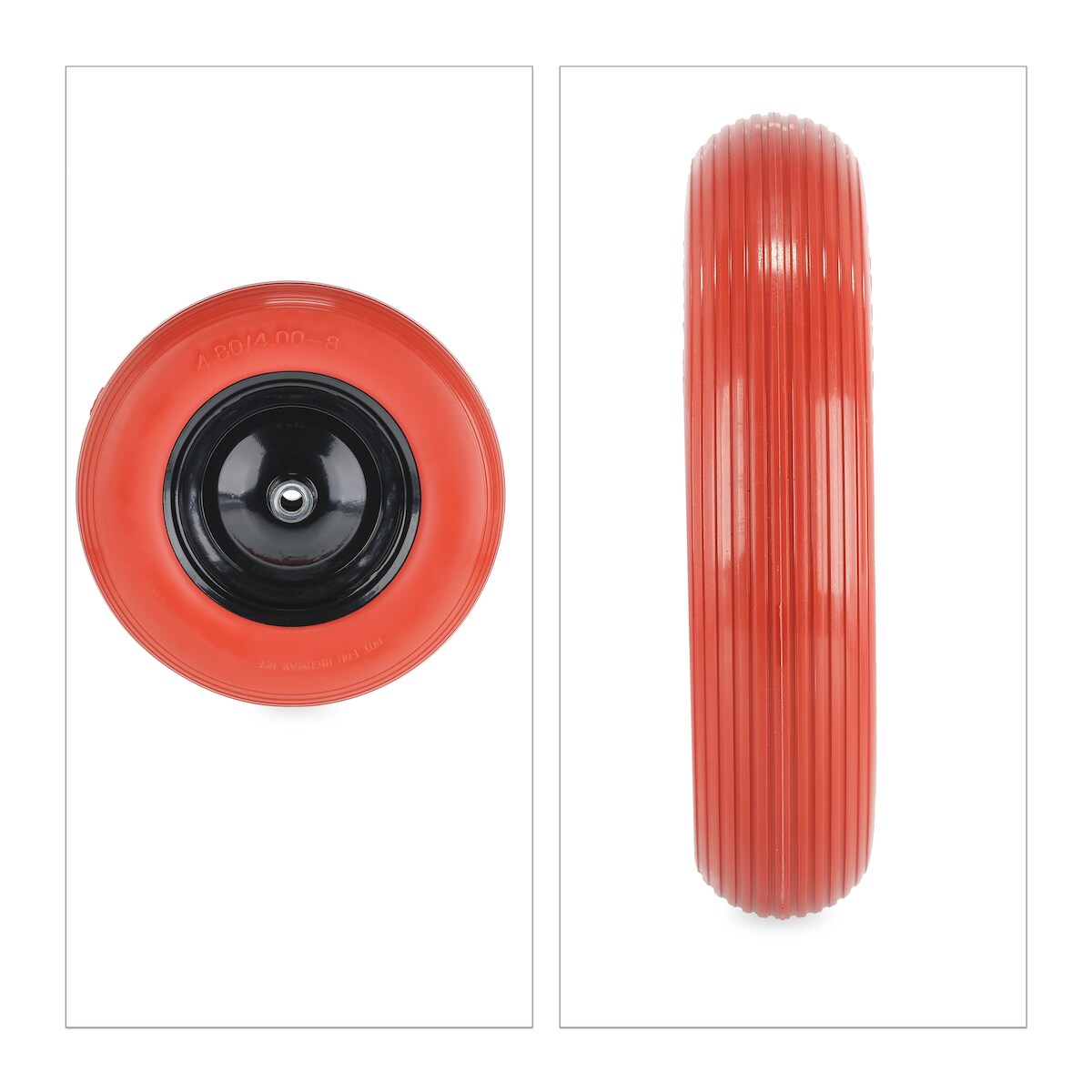 Relaxdays Schubkarrenrad PU 4.80 4.00-8, Vollgummireifen mit Stahlfelge, pannensicher, Schubkarrenreifen, rot/schwarz