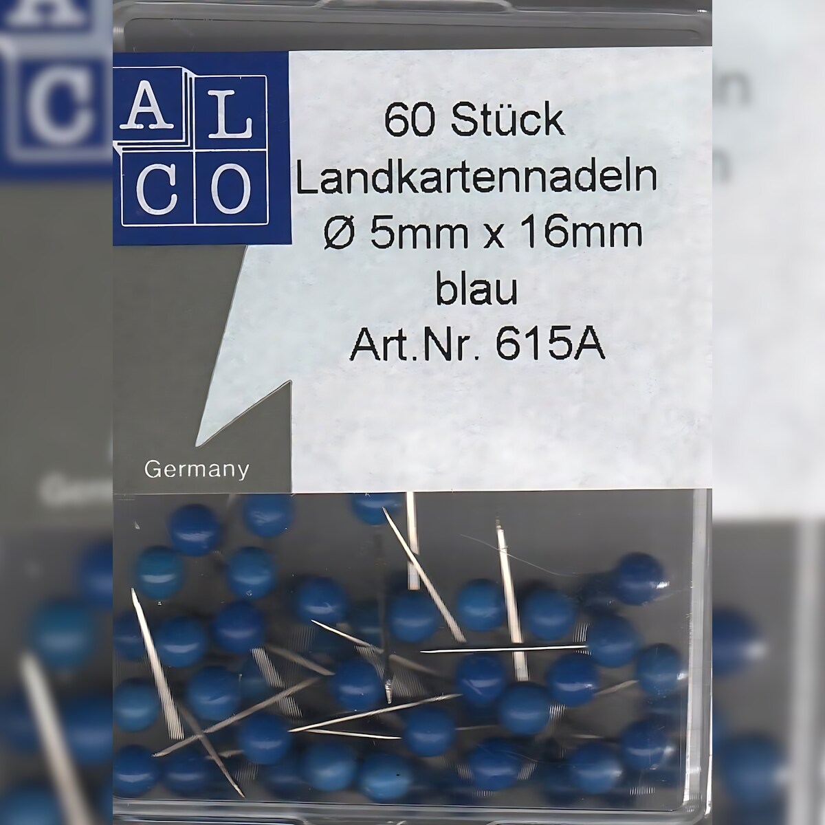 Alco Landkartennadel 16mm Ø5mm blau 60 Stück