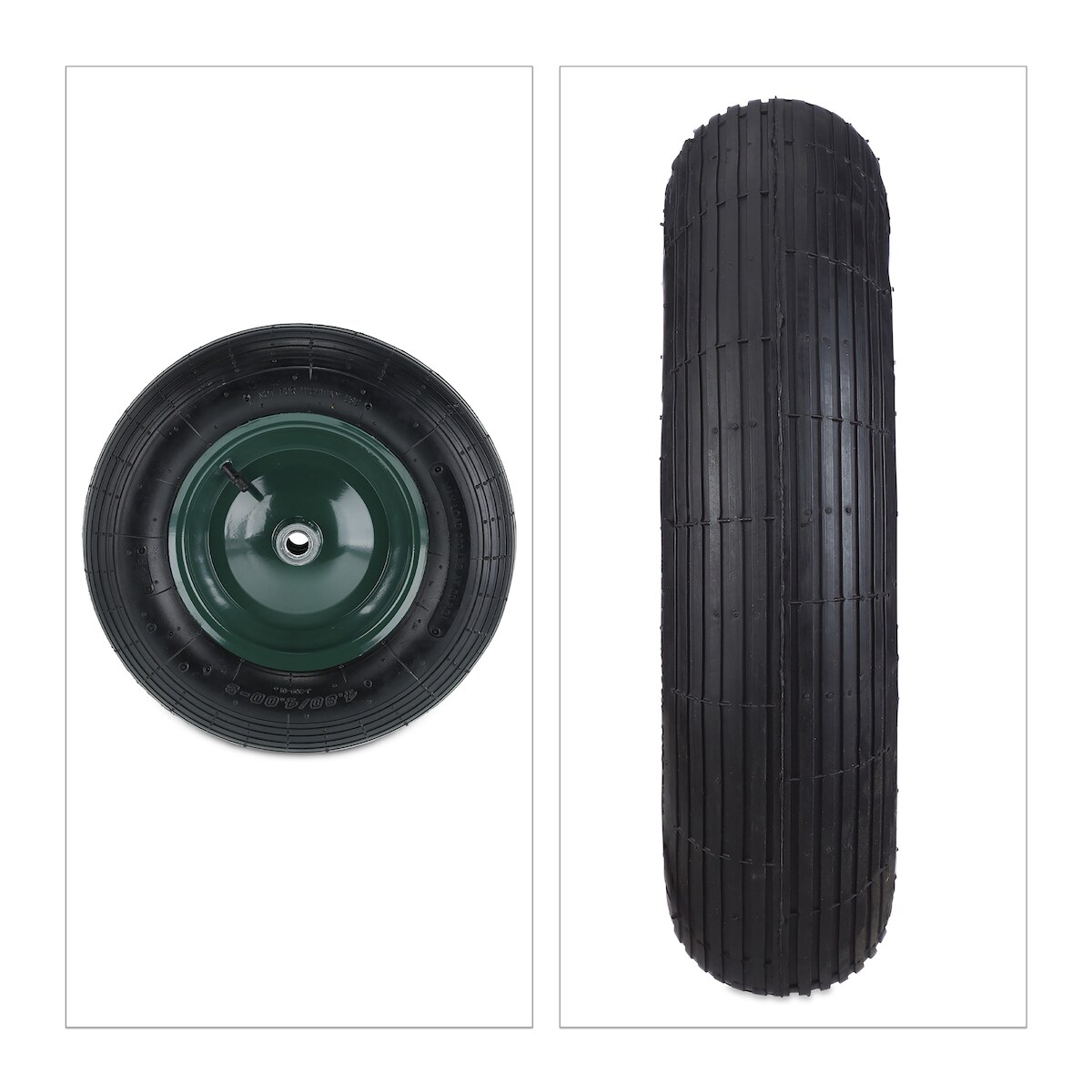 Relaxdays Schubkarrenrad 4.80 4.00-8, luftbereift, Ersatzrad Schubkarre, Stahlfelge, Schubkarrenreifen, schwarz/grün
