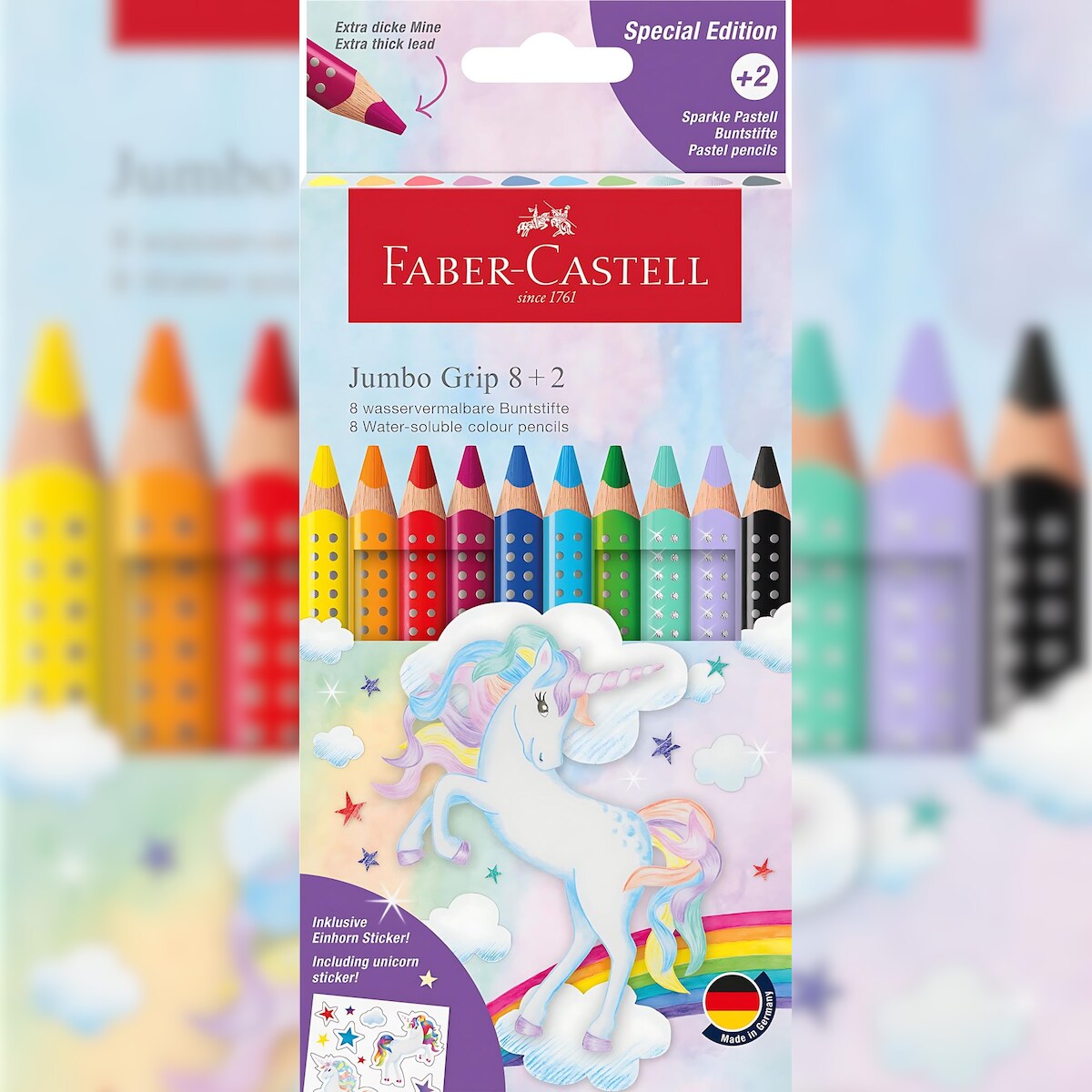 Faber Castell Buntstift Grip Jumbo 5,3 mm Einhorn 8+2 Etui
