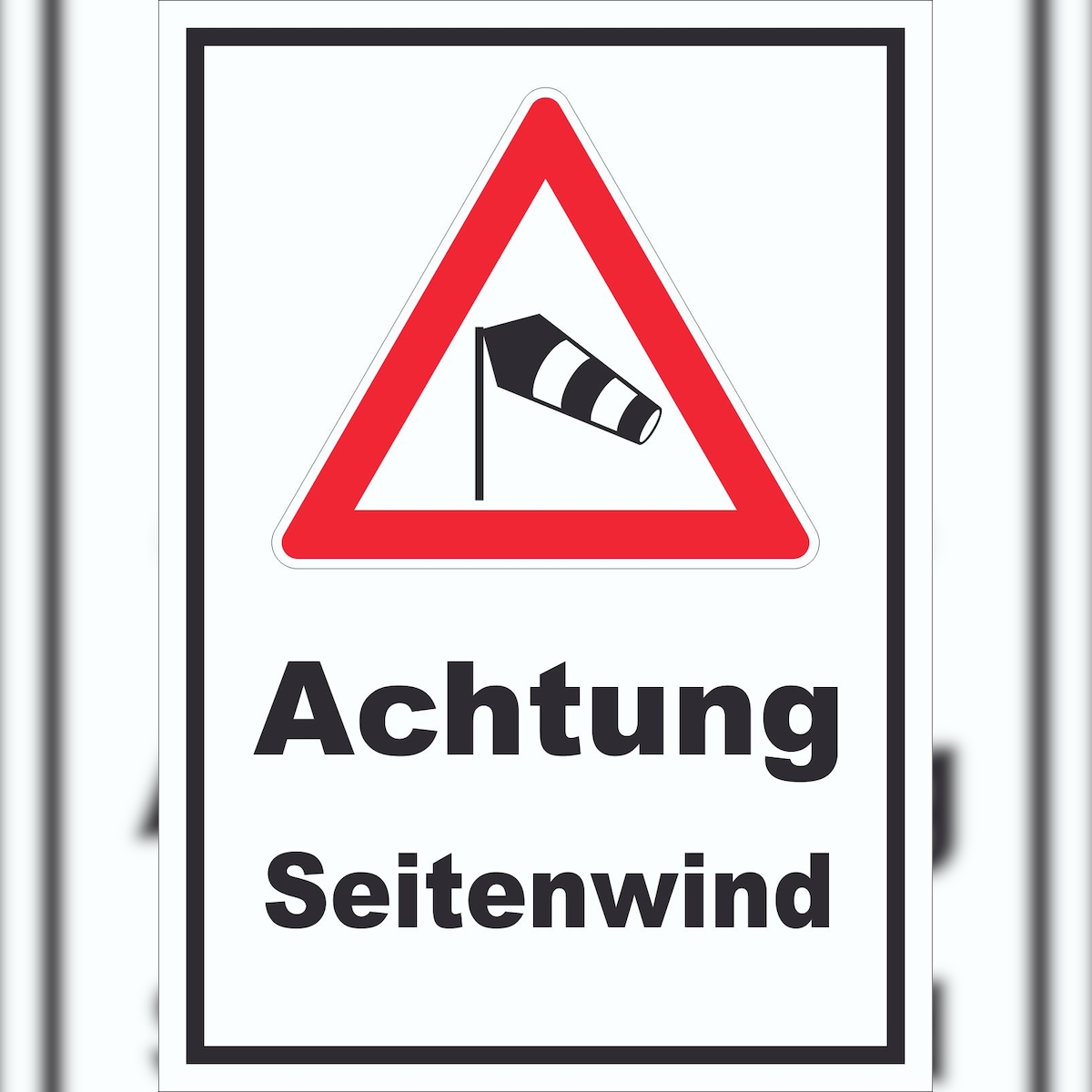 HB-Druck Schild Achtung Seitenwind A4 Rückseite selbstklebend
