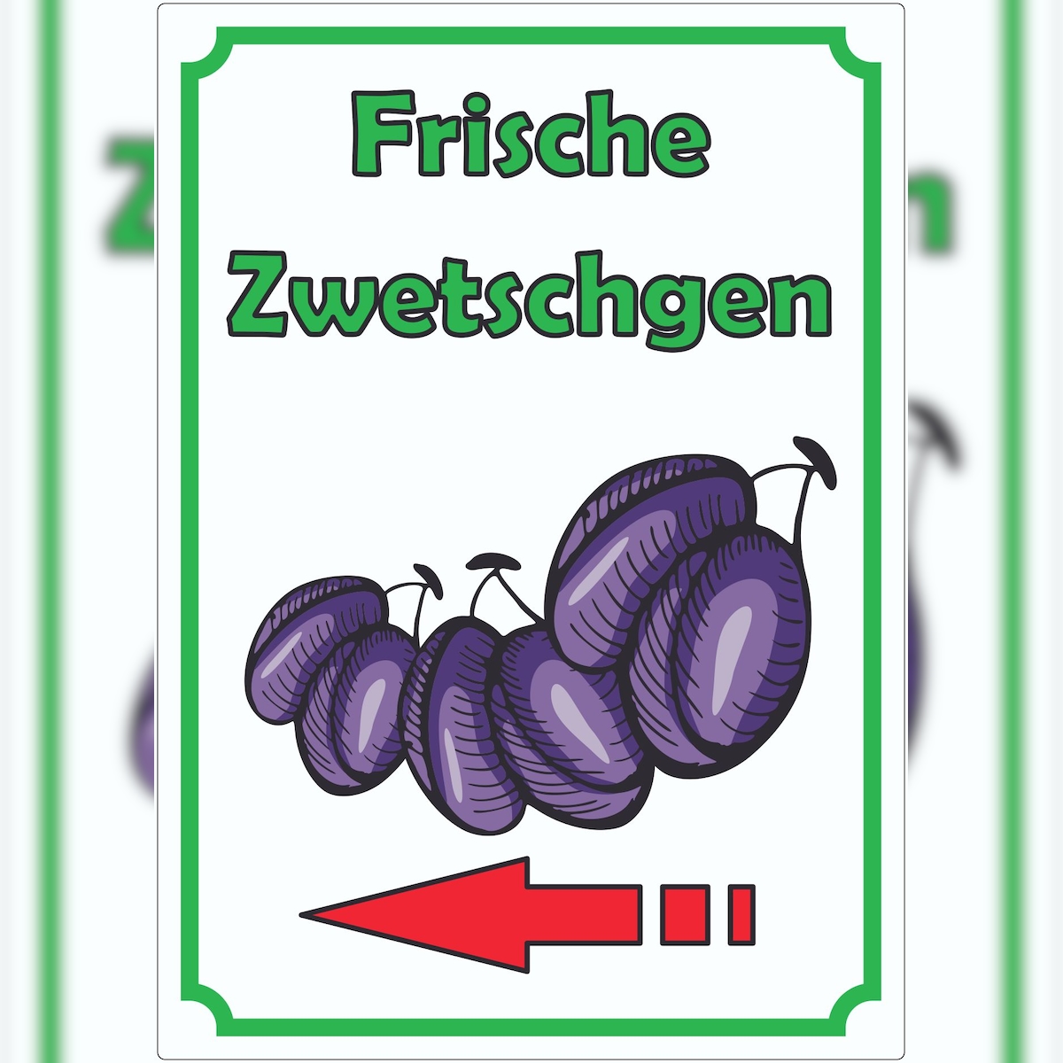 HB-Druck Frische Zwetschgen Aufkleber Hochkant mit Pfeil links A8 (52x74mm)