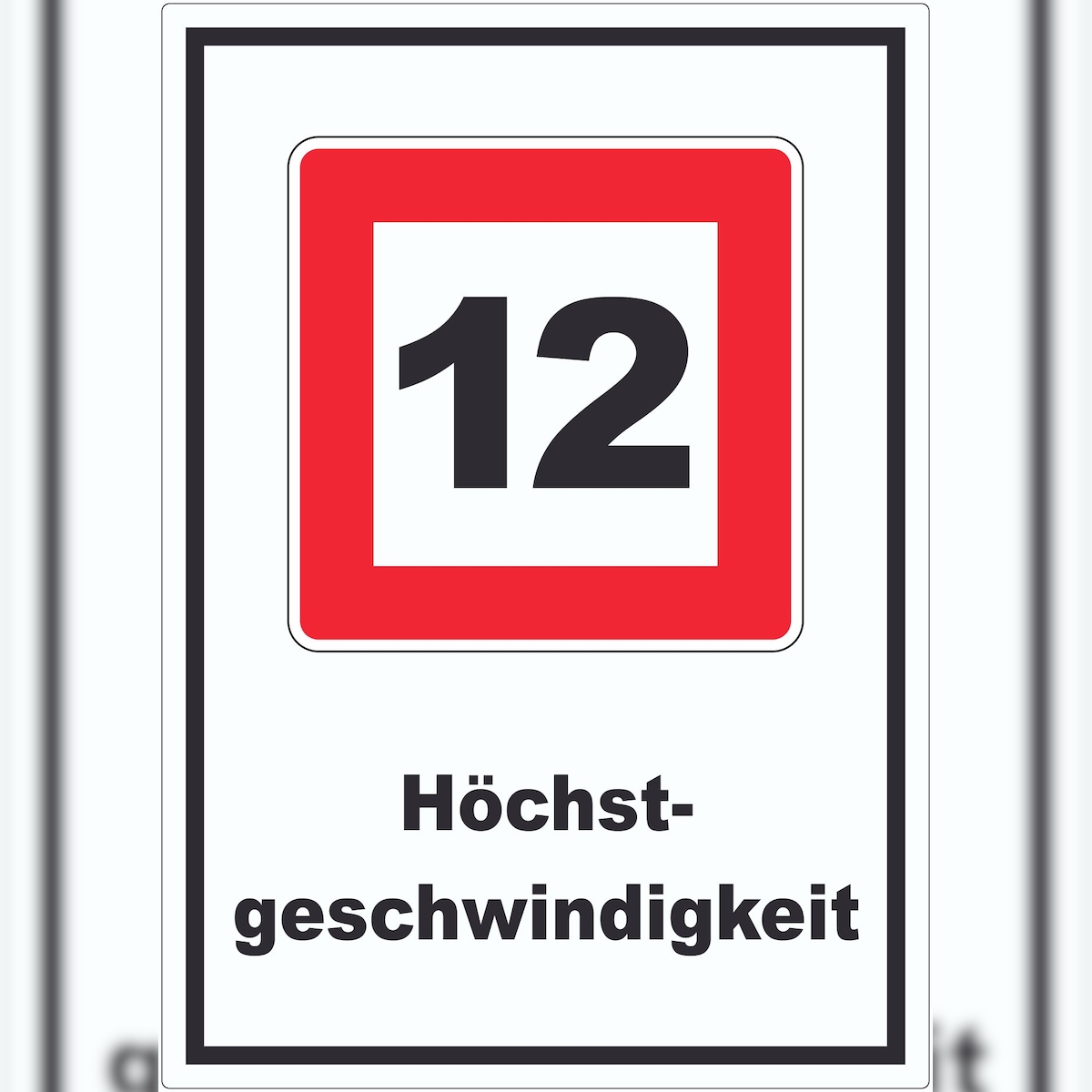 HB-Druck Höchstgeschwindigkeit 12 kmh nicht zu überschreiten Aufkleber mit Symbol und Text A9 (37x52mm)