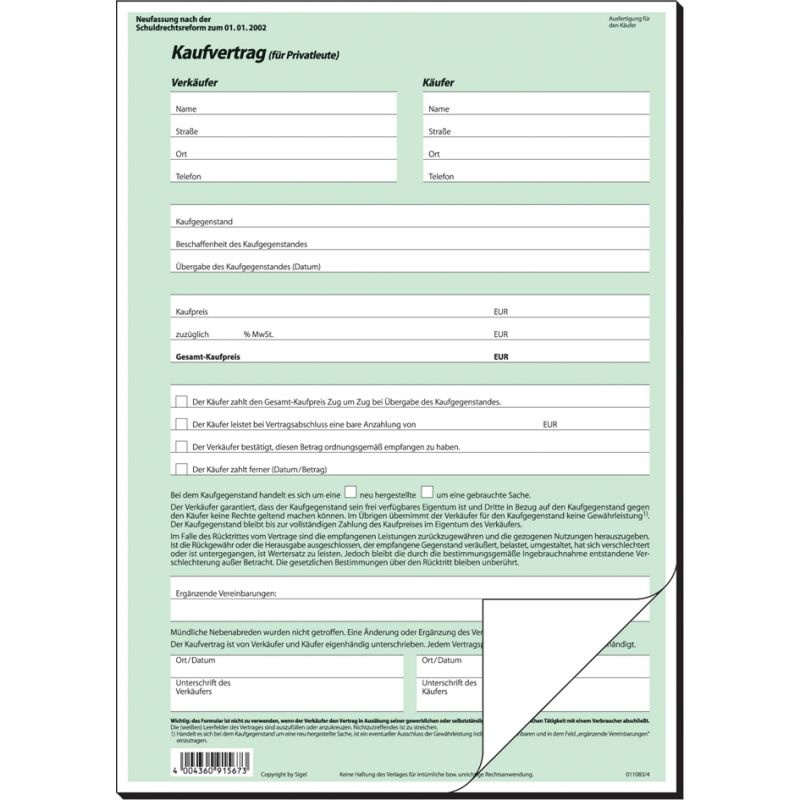 sigel Vordruck 'Kaufvertrag allgemein', A4, SD, 2-fach