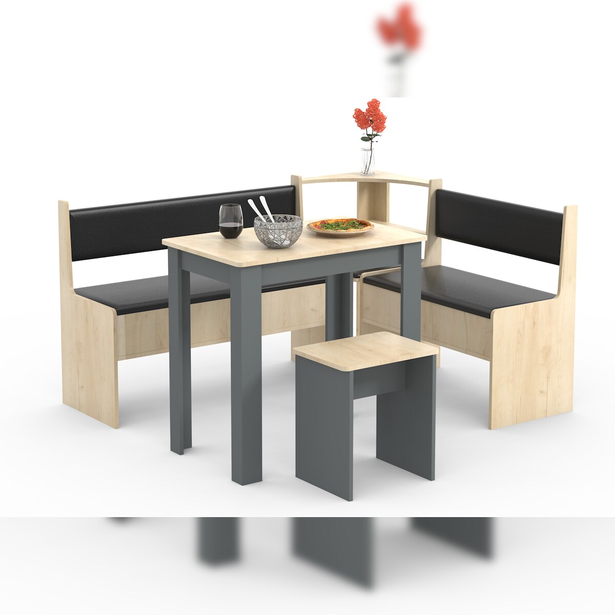 VCM Essgruppe Esal Anthrazit / Honig-Eiche H. 80 x B. 153 x T. 123 cm