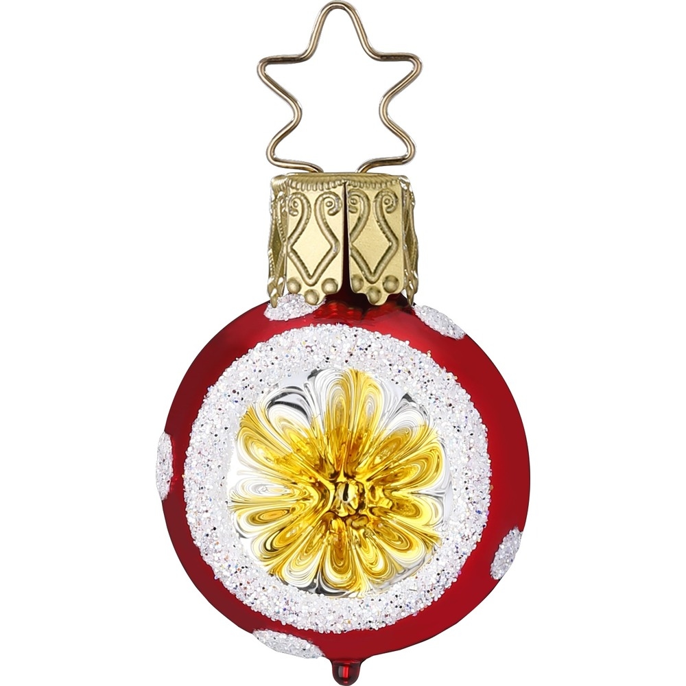 INGE-Glas Manufaktur Weihnachtskugel Glas 3,5cm - Mini Christbaumkugel mit Reflex Weihnachtsbaumkugel Mundgeblasen & Handbemalt Christbaumschmuck Reflexkugel Rot Gelb