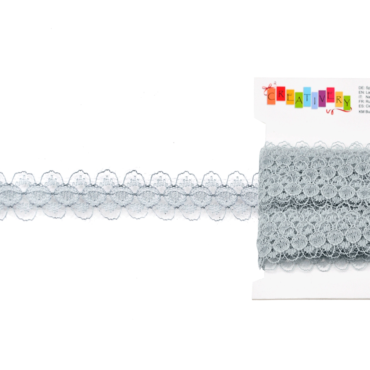 Creativery 15mm Spitzenband 10m Vintage Spitzenborte Spitzenbordüre Zierband Silber / Grau
