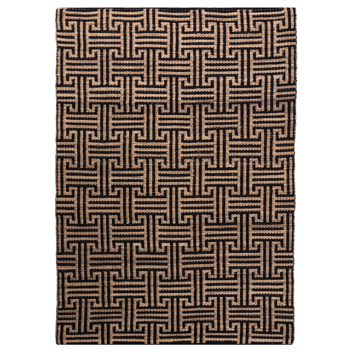 KADIMA DESIGN Flachgewebe Teppich Natur-Schwarz | Geometrisches Meander Muster | Jute-Baumwoll-Mix | Handgefertigt & Robust | 160x230cm