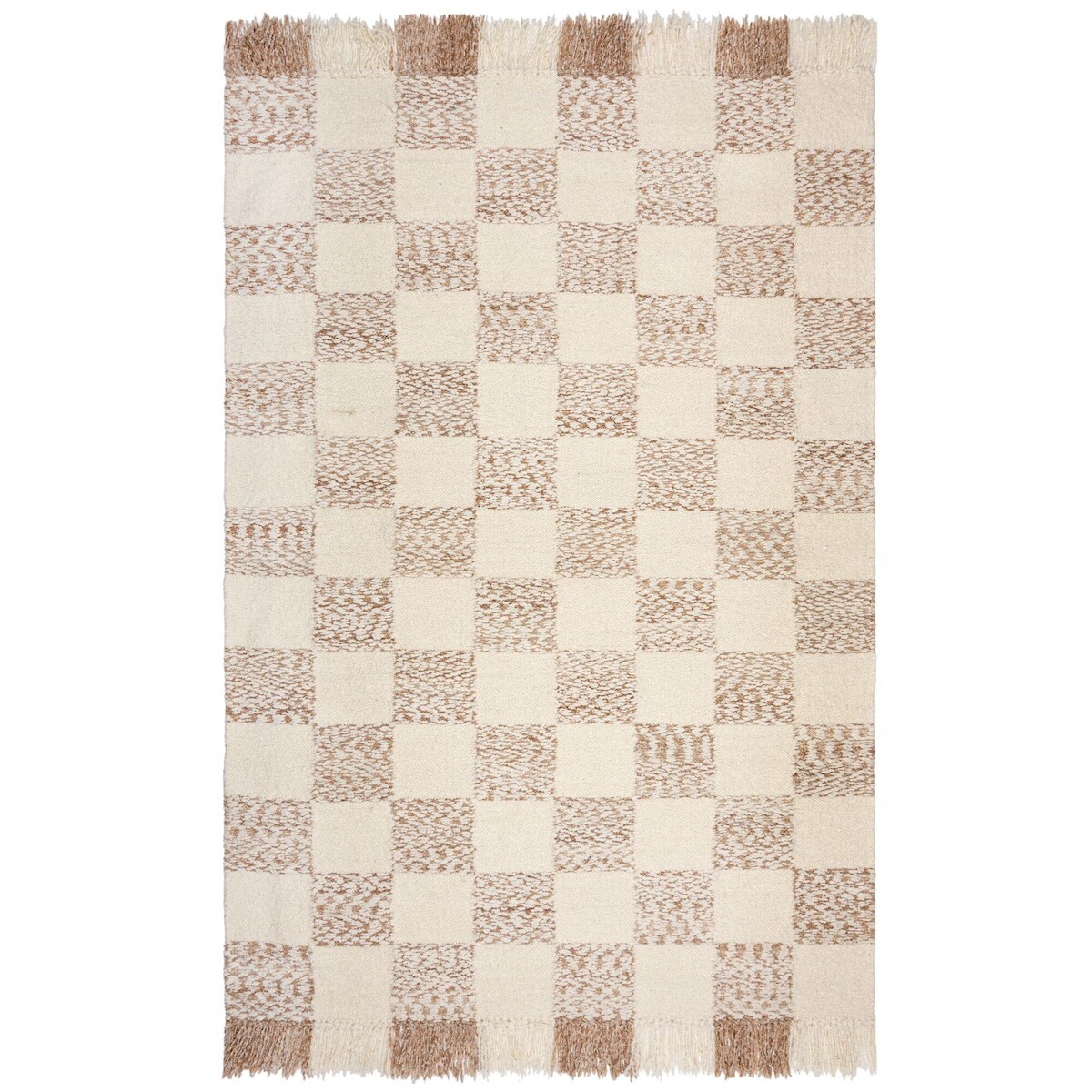 KADIMA DESIGN Teppich Schachbrettmuster Bouclé-Flor mit Quasten Beige-Natur | 160x230cm