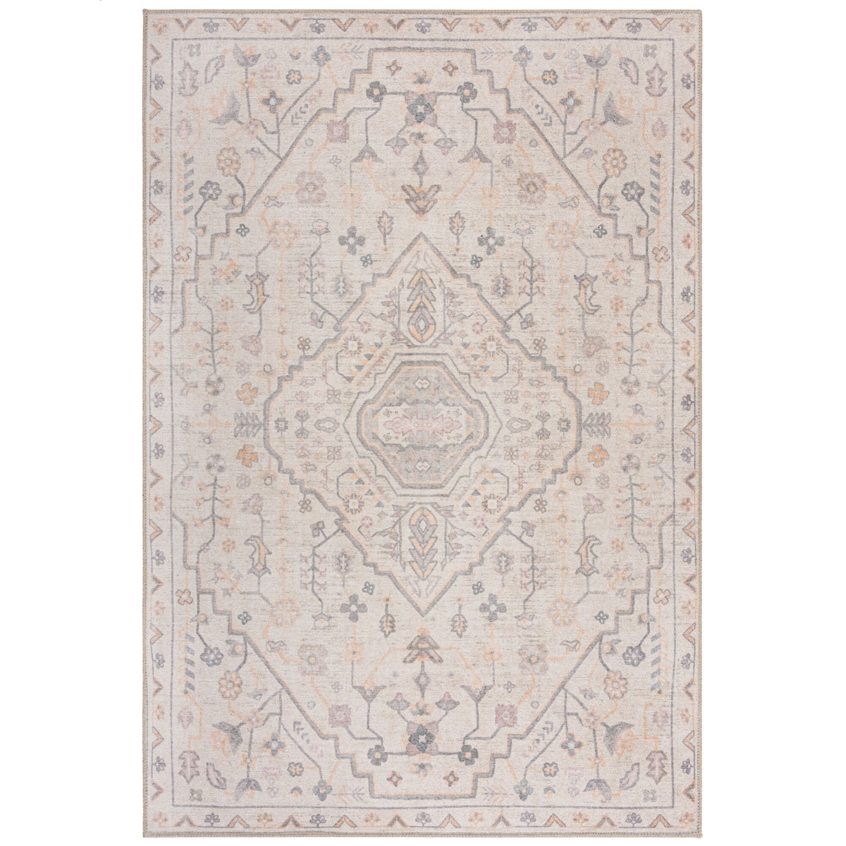 KADIMA DESIGN Teppich waschbar Kurzflor Medaillon Muster Orientalisches Design Beige Vintage-Optik | 152x230cm