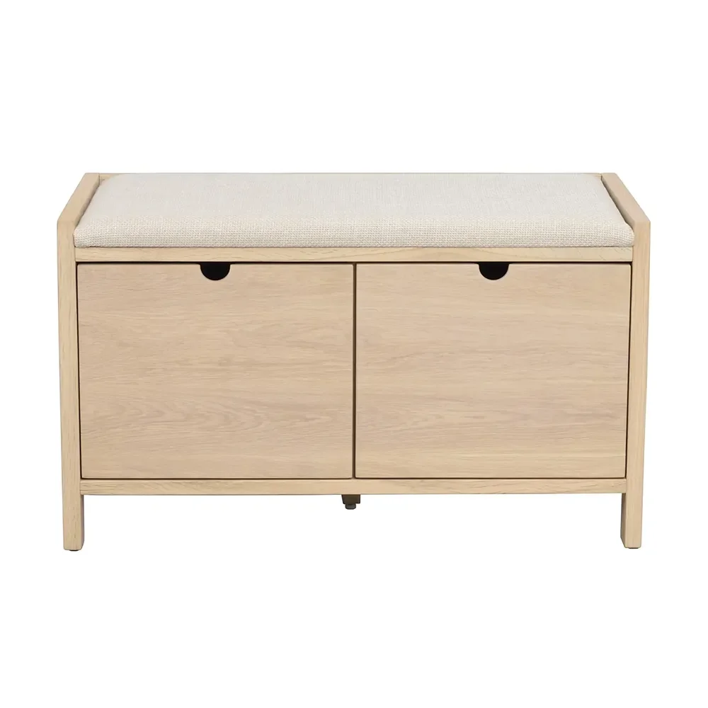 Rowico Home, Hillmond Aufbewahrungsbank 80 cm weiß pigmentierte Eiche/beiger Stoff