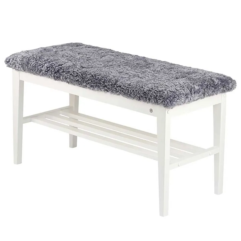 Oscarssons Möbel, Nadja Bench Weiß lackiert Birke/Schafsfell hellgrau