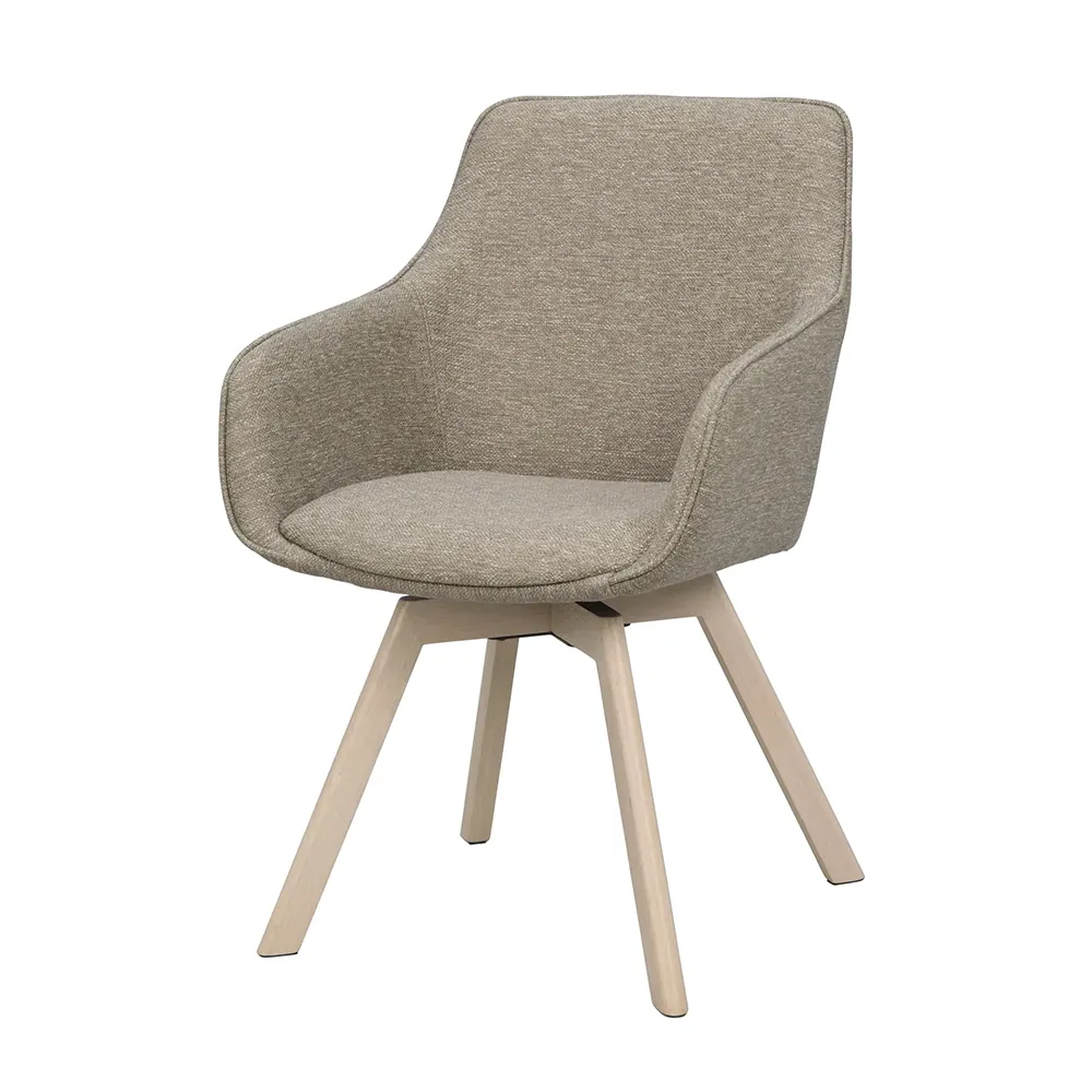 Rowico Home, Alison Stuhl mit Armlehnen dunkelbeiger stoff/weiß pigmentierte eichenbeine