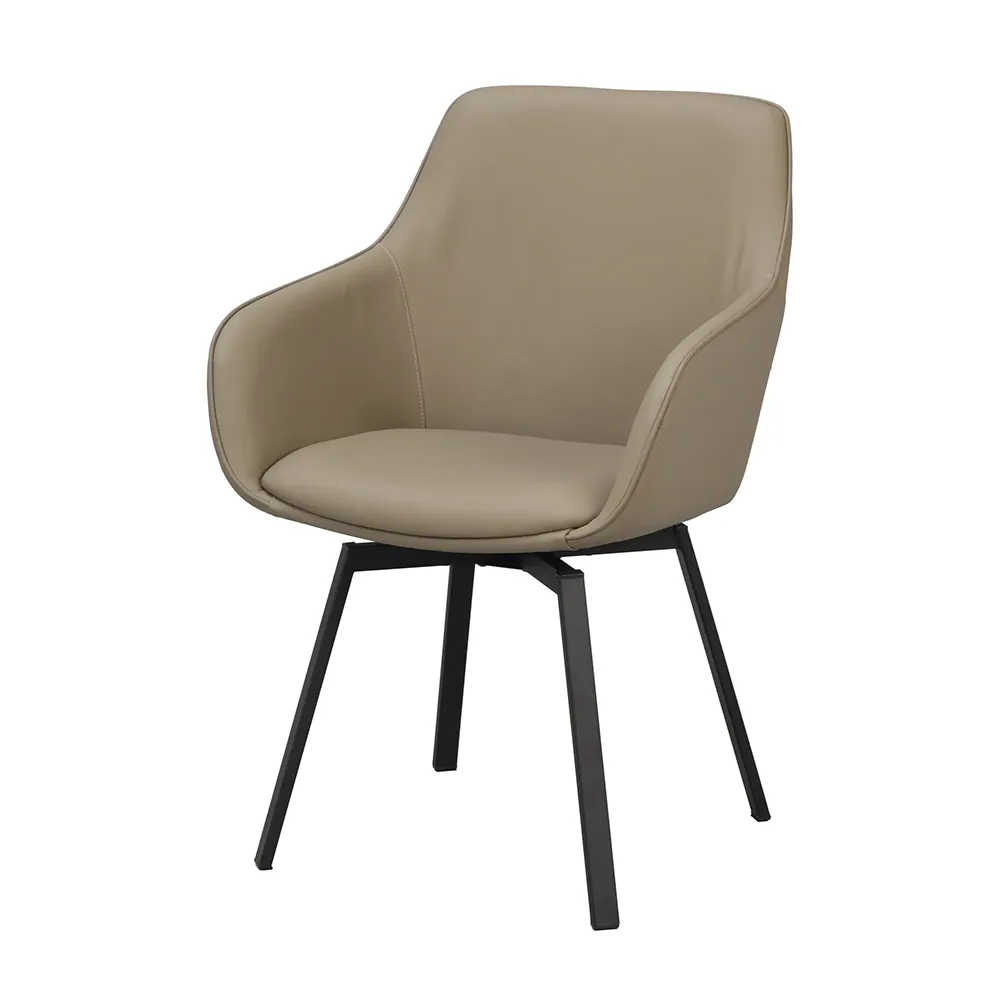 Rowico Home, Alison Stuhl mit Armlehnen beiges leder/schwarze metallbeine