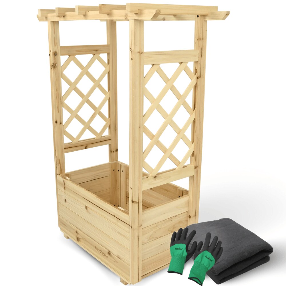 DELUKE Hochbeet mit Rankgitter THAO Inkl. Vlies & Handschuhe, Pflanzkasten mit Rankhilfe Blumenkasten für Kletterpflanzen hängende Körbe 58cm Breit