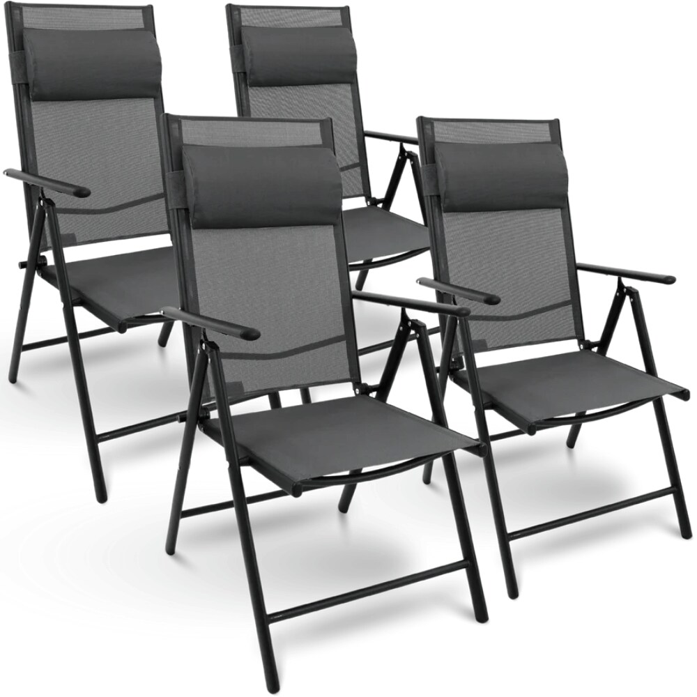 DELUKE 4er Set Gartenstuhl Hochlehner Verstellbar VOGT - Stahlgestell | Gartenstühle Klappbar mit Kopfkissen Campingstuhl Wetterfest Klappstuhl, Anthrazit