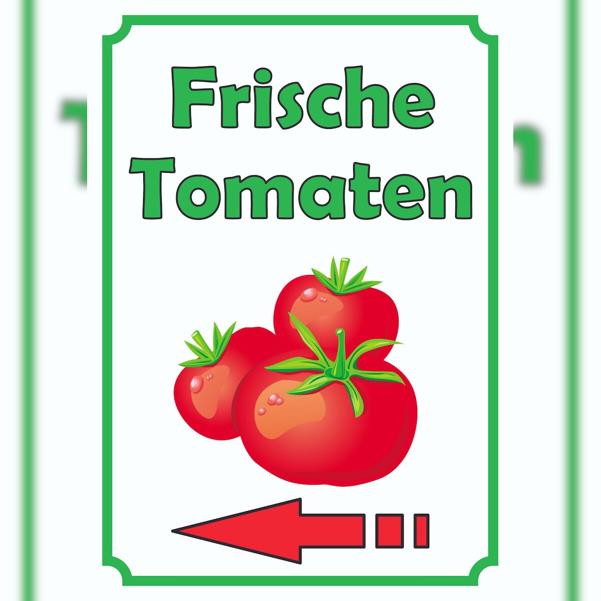 HB-Druck Frische Tomaten Schild Hochkant mit Pfeil links A4 Rückseite selbstklebend