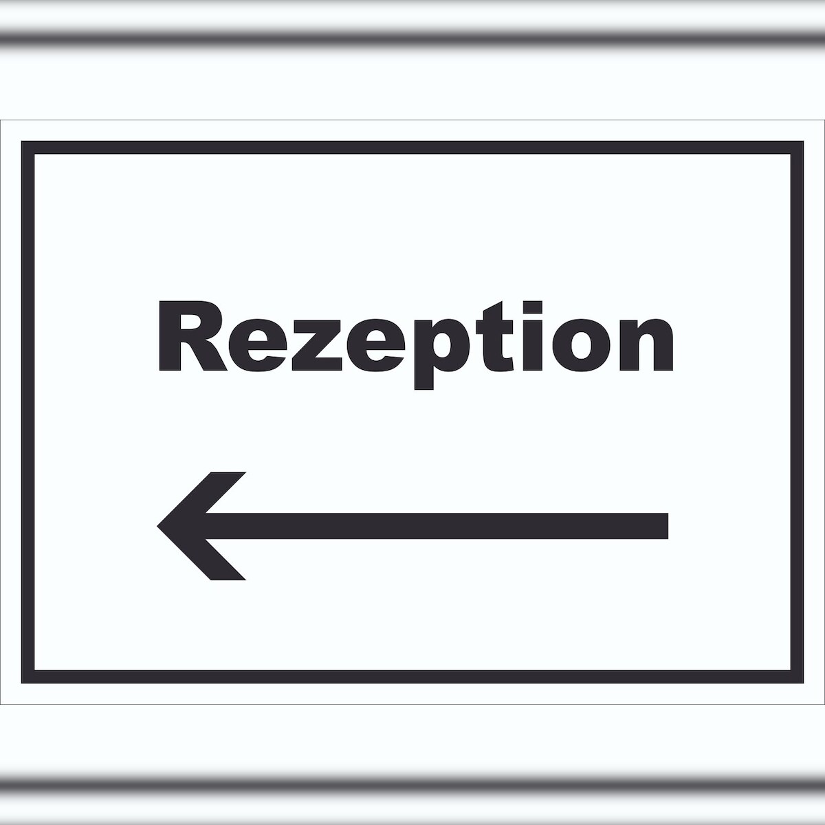 HB-Druck Rezeption Schild mit Text und Richtungspfeil links Anmeldung Eingang waagerecht A4 (210x297mm)