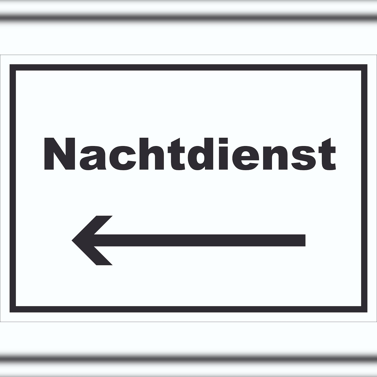 HB-Druck Nachtdienst Schild mit Text und Richtungspfeil links Nachtschalter waagerecht A1 Rückseite selbstklebend