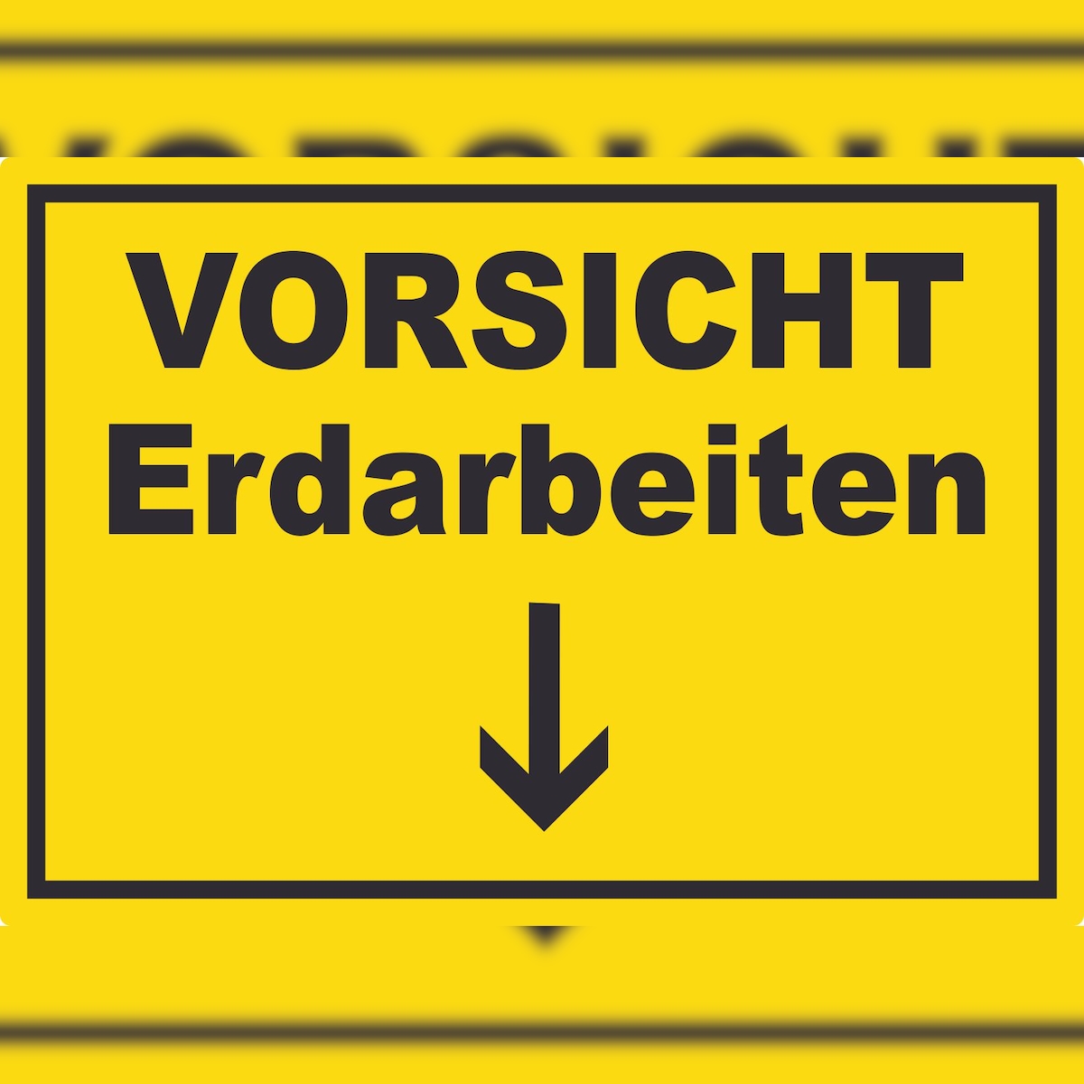 HB-Druck Vorsicht Erdarbeiten mit Richtungspfeil unten Aufkleber A7 (74x105mm)