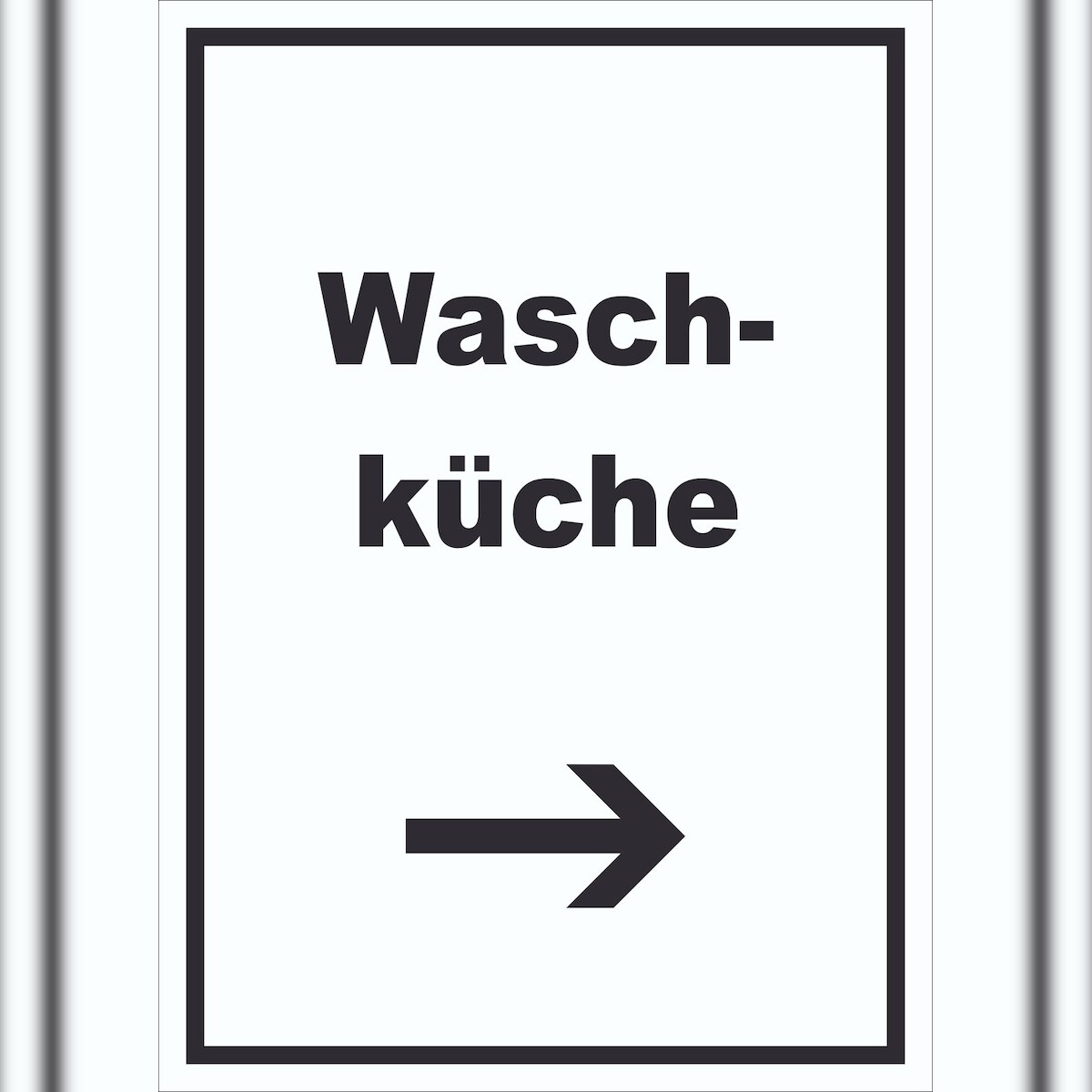 HB-Druck Waschküche Schild mit Text und Richtungspfeil rechts Waschraum hochkant A4 (210x297mm)