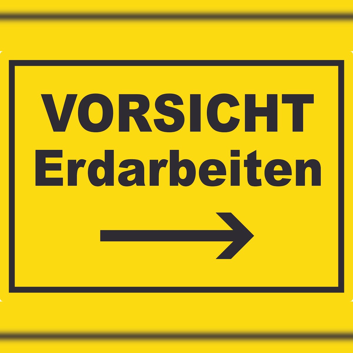 HB-Druck Vorsicht Erdarbeiten mit Richtungspfeil rechts Aufkleber A3 (297x420mm)