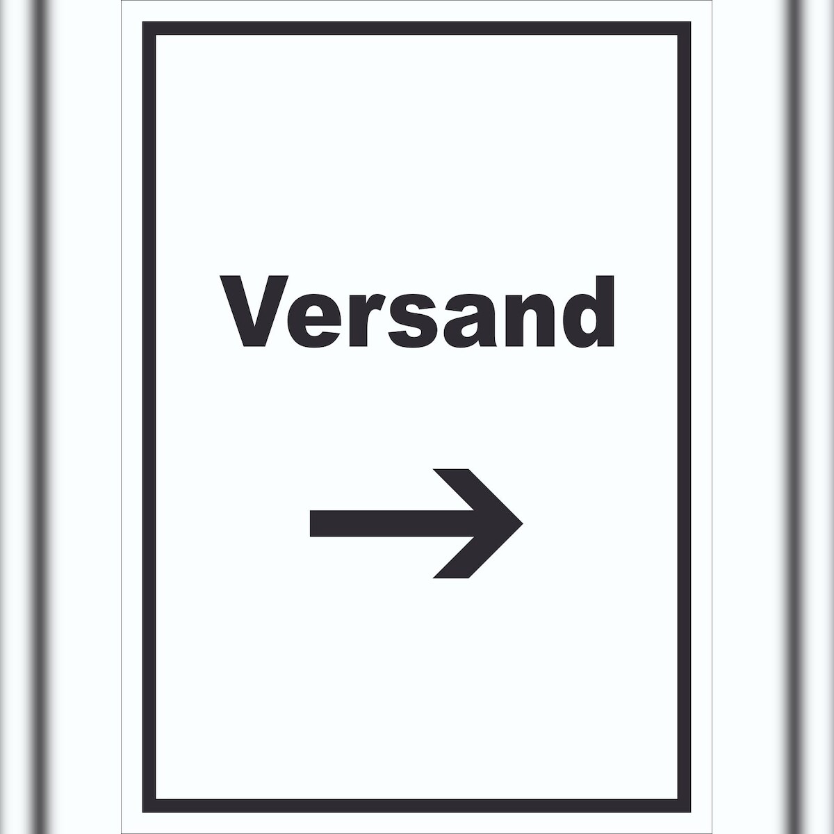 HB-Druck Versand Schild mit Text und Richtungspfeil rechts Lieferung shipping hochkant A6 Rückseite selbstklebend